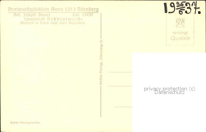 71494415 NueRNBERG CITY Bratwurstgloecklein (Stammtisch der alten Meister) postalisch nicht gelaufen Erhaltung siehe scans KatCode: 11110009564000