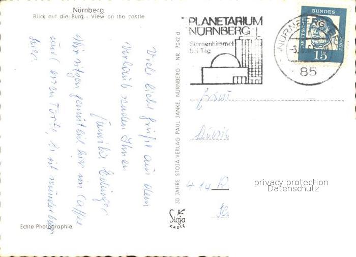 72200953 alte Postkarte NueRNBERG CITY Burg postalisch gelaufen Erhaltung siehe scans KatCode: 11110009564000