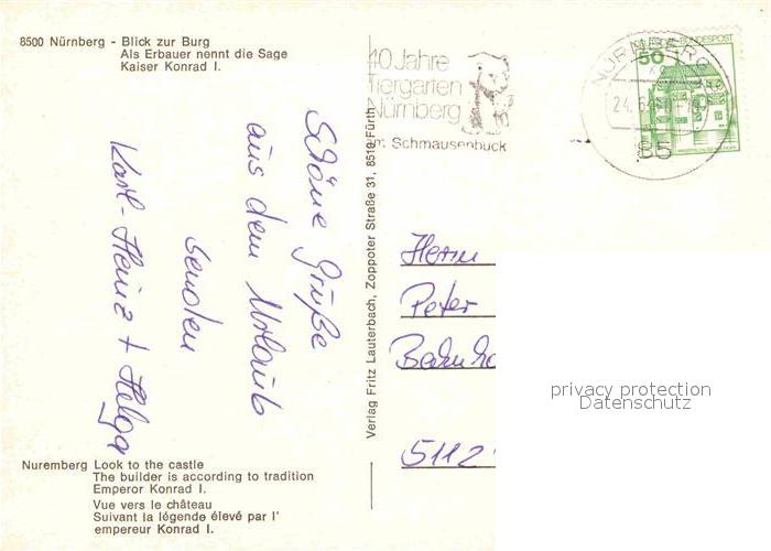 72830580 alte Postkarte NueRNBERG CITY Burg Erbauer Kaiser Konrad I Altstadt Fliegeraufnahme postalisch gelaufen Erhaltung siehe scans [FriedD77] KatCode: 11110009564000