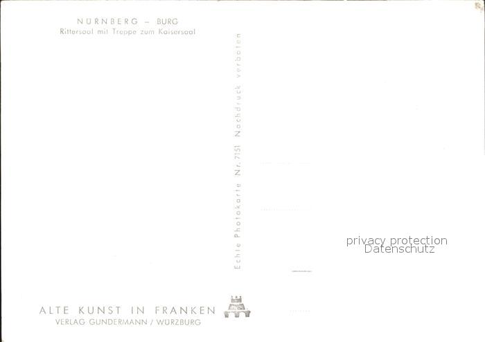 72461115 NueRNBERG CITY Burg Rittersaal postalisch nicht gelaufen Erhaltung siehe scans KatCode: 11110009564000