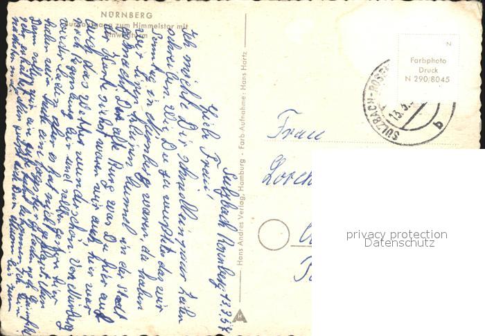 72410061 alte Postkarte NueRNBERG CITY Burgaufgang zum Himmelstor postalisch gelaufen Erhaltung siehe scans KatCode: 11110009564000