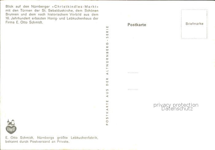 72426136 NueRNBERG CITY Christkindles Markt Tuerme St Sebalduskirche Schoener Brunnen Lebkuchenhaus Weihnachtskarte Neujahrskarte postalisch nicht gelaufen Erhaltung siehe scans KatCode: 11110009564000