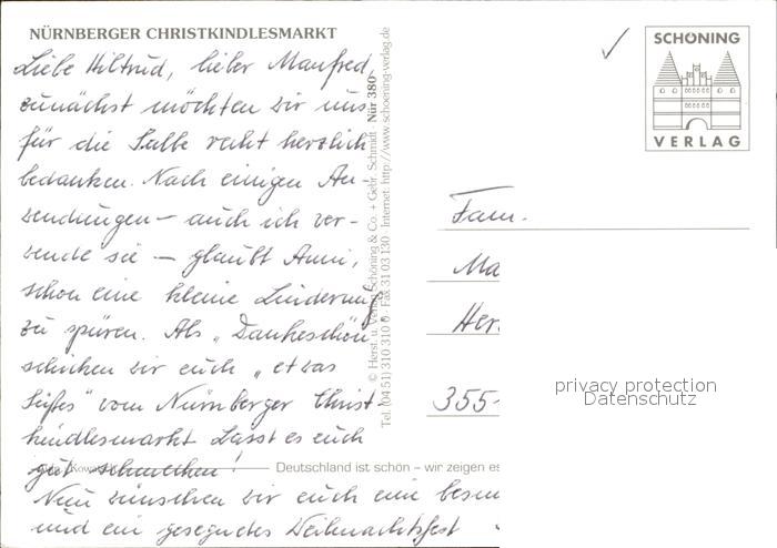 72453521 NueRNBERG CITY Christkindlesmarkt postalisch nicht gelaufen Erhaltung siehe scans KatCode: 11110009564000