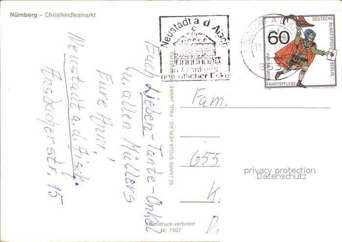 72402092 alte Postkarte NueRNBERG CITY Christkindlesmarkt postalisch gelaufen Erhaltung siehe scans KatCode: 11110009564000