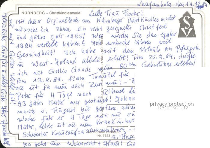 72373297 NueRNBERG CITY Christkindlesmarkt postalisch nicht gelaufen Erhaltung siehe scans KatCode: 11110009564000