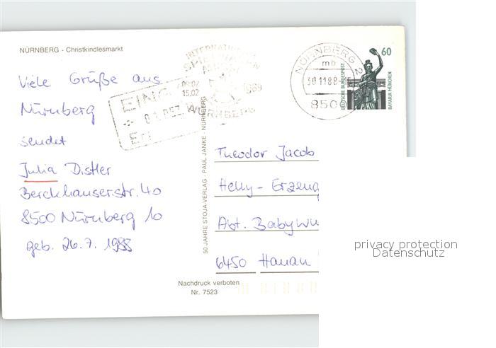 72014455 alte Postkarte NueRNBERG CITY Christkindlesmarkt postalisch gelaufen Erhaltung siehe scans KatCode: 11110009564000