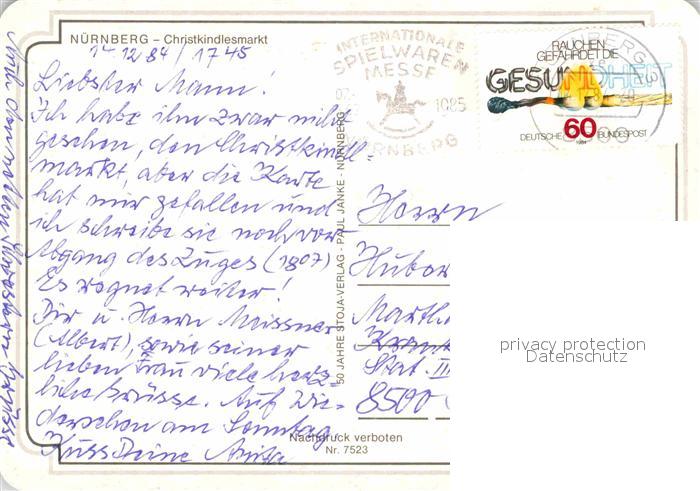 72850544 alte Postkarte NueRNBERG CITY Christkindlesmarkt postalisch gelaufen Erhaltung siehe scans [AndreD76] KatCode: 11110009564000