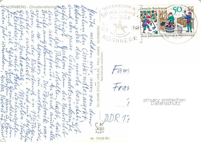 72841551 alte Postkarte NueRNBERG CITY Christkindlesmarkt postalisch gelaufen Erhaltung siehe scans [LiesaD40] KatCode: 11110009564000
