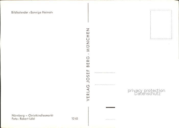 71894287 NueRNBERG CITY Christkindlesmarkt Bildkalender Sonnige Heimat postalisch nicht gelaufen Erhaltung siehe scans KatCode: 11110009564000