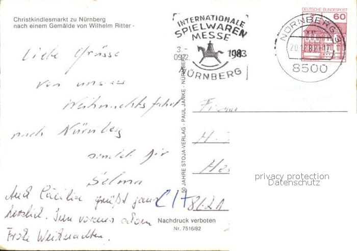 72526518 alte Postkarte NueRNBERG CITY Christkindlesmarkt Kuenstlerkarte postalisch gelaufen Erhaltung siehe scans KatCode: 11110009564000