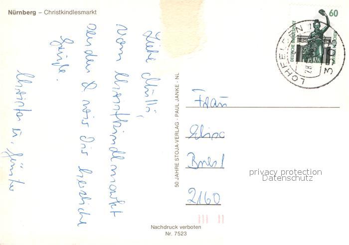 72943072 alte Postkarte NueRNBERG CITY Christkindlesmarkt Nacht postalisch gelaufen Erhaltung siehe scans [KathaD81] KatCode: 11110009564000