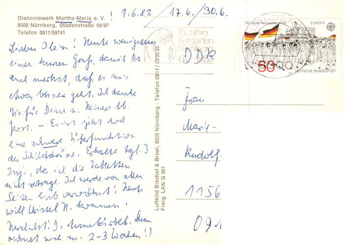 73944812 NueRNBERG CITY Diakoniewerk Martha Maria Fliegeraufnahme postalisch gelaufen Erhaltung siehe scans [WerneD78] alte Postkarte Wern Katcode 11110009564000