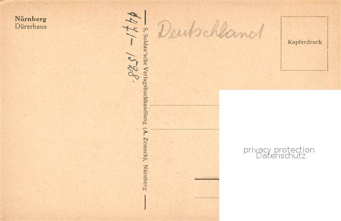 43349696 NueRNBERG CITY Duererhaus Kuenstlerkarte Kupferdruck postalisch nicht gelaufen Erhaltung siehe scans [FriedD77] Frie Katcode 11110009564000