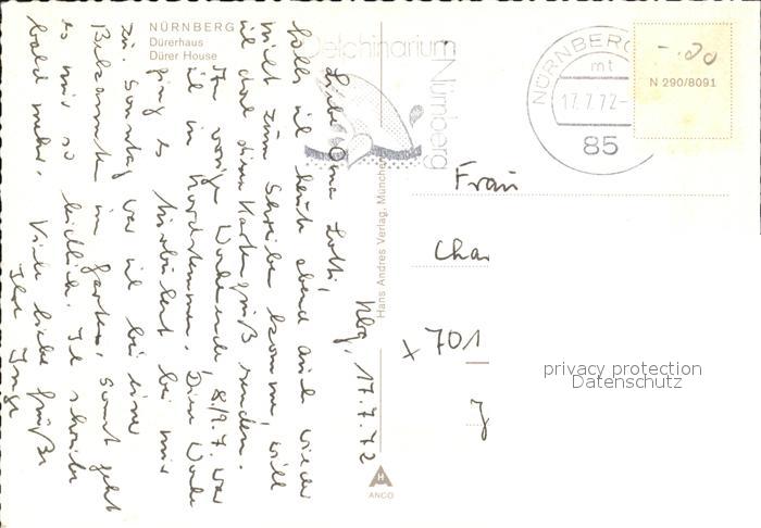 72540622 alte Postkarte NueRNBERG CITY Duererhaus postalisch gelaufen Erhaltung siehe scans [LiesaD40 kt122box] KatCode: 11110009564000