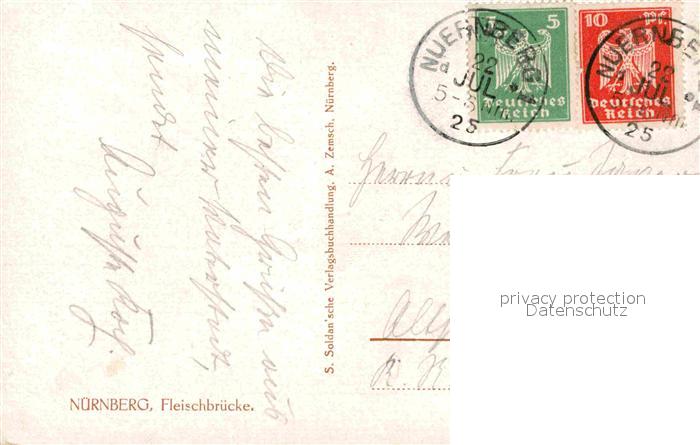 72739111 alte Postkarte NueRNBERG CITY Fleischbruecke postalisch gelaufen Erhaltung siehe scans [WerneD78] KatCode: 11110009564000