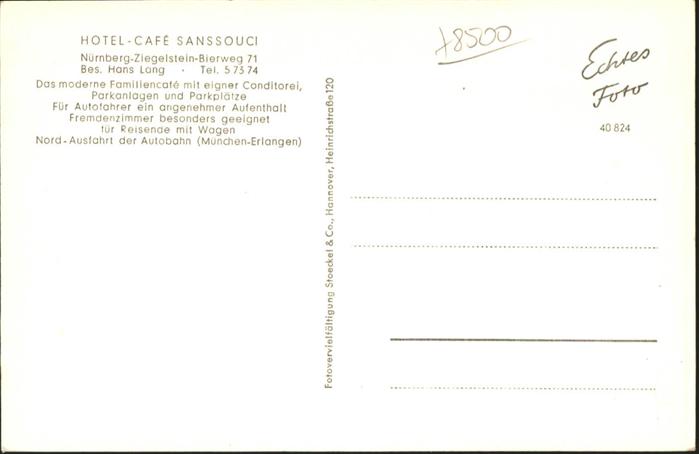 40970399 NueRNBERG CITY Fliegeraufnahme Hotel Cafe Sanssouci postalisch nicht gelaufen Alte Ansichtskarte Postkarte Katcode 11110009564000
