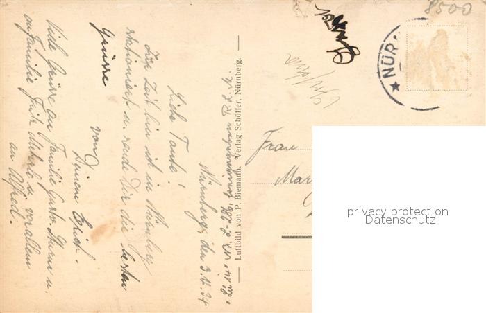 43345274 NueRNBERG CITY Fliegeraufnahme mit Burg postalisch gelaufen Erhaltung siehe scans [WerneD78] alte Postkarte Wern Katcode 11110009564000