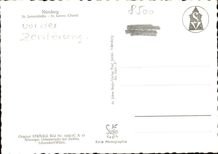 41317925 NueRNBERG CITY Flugaufnahme St. Lorenzkirche postalisch nicht gelaufen gute Erhaltung Alte Ansichtskarte Postkarte Stef Katcode 11110009564000