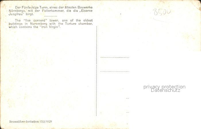 72314856 NueRNBERG CITY Fuenfeckiger Turm postalisch nicht gelaufen Erhaltung siehe scans KatCode: 11110009564000
