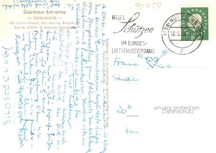 73862578 NueRNBERG CITY Gasthaus Schranke Schlenkerla Fachwerkhaus Altstadt postalisch gelaufen Erhaltung siehe scans [FriedD77] alte Postkarte Frie Katcode 11110009564000