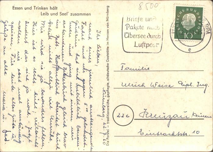 40988205 NueRNBERG CITY [Handschriftlich] Postei postalisch gelaufen Alte Ansichtskarte Postkarte alte Postkarte Katcode 11110009564000