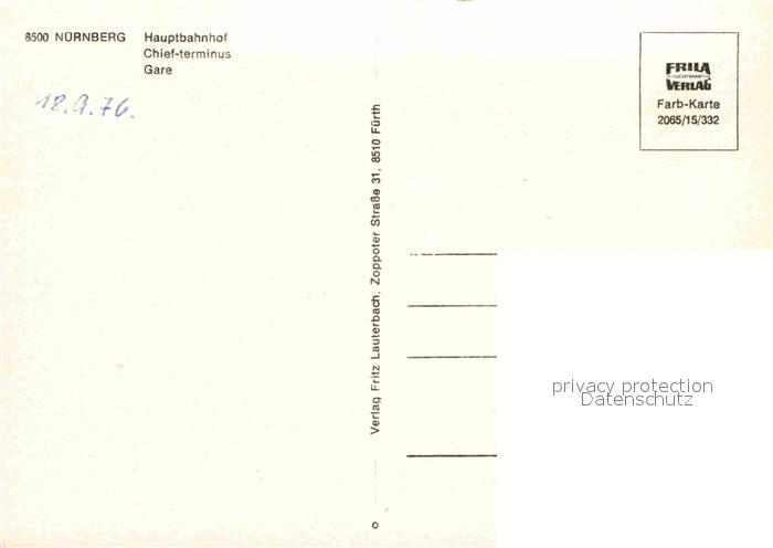 72707089 NueRNBERG CITY Hauptbahnhof postalisch nicht gelaufen Erhaltung siehe scans [WerneD78] KatCode: 11110009564000