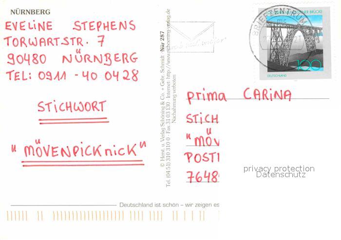 72714412 alte Postkarte NueRNBERG CITY Hauptmarkt Burg Duererplatz Heilig-Geist-Spital Hans-Sachs-Brunnen Weinstadel postalisch gelaufen Erhaltung siehe scans [LiesaD40] KatCode: 11110009564000