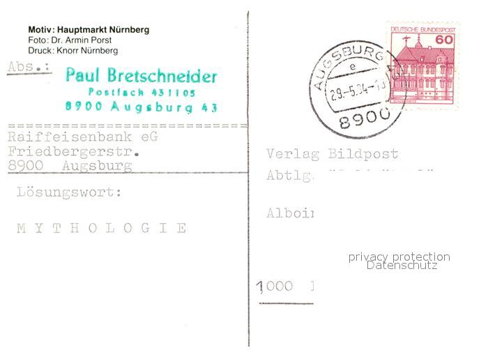 72962125 alte Postkarte NueRNBERG CITY Hauptmarkt postalisch gelaufen Erhaltung siehe scans [PaolaD17] KatCode: 11110009564000