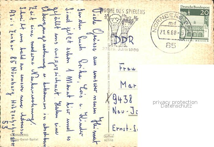 72425791 alte Postkarte NueRNBERG CITY Heilig Geist Spital postalisch gelaufen Erhaltung siehe scans KatCode: 11110009564000