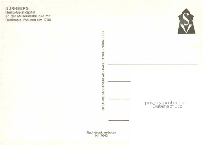 72765189 NueRNBERG CITY Heilig Geist Spital Museumsbruecke Denkmalaufbauten um 1700 postalisch nicht gelaufen Erhaltung siehe scans [FriedD77] KatCode: 11110009564000