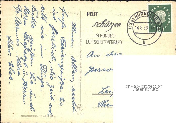 72455256 alte Postkarte NueRNBERG CITY Henkersteg postalisch gelaufen Erhaltung siehe scans KatCode: 11110009564000
