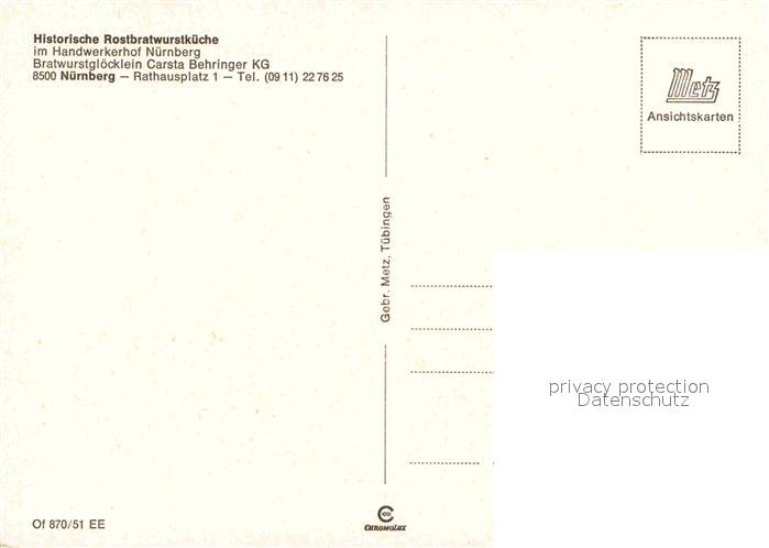 72673118 NueRNBERG CITY Historische Rostbratwurstkueche postalisch nicht gelaufen Erhaltung siehe scans [AndreD76] KatCode: 11110009564000