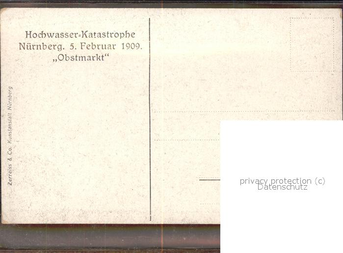 41478537 NueRNBERG CITY Hochwasser am 5.Februar 1909 am Obstmarkt postalisch nicht gelaufen Erhaltung siehe scans Alte Ansichtskarte Postkarte Bert Katcode 11110009564000