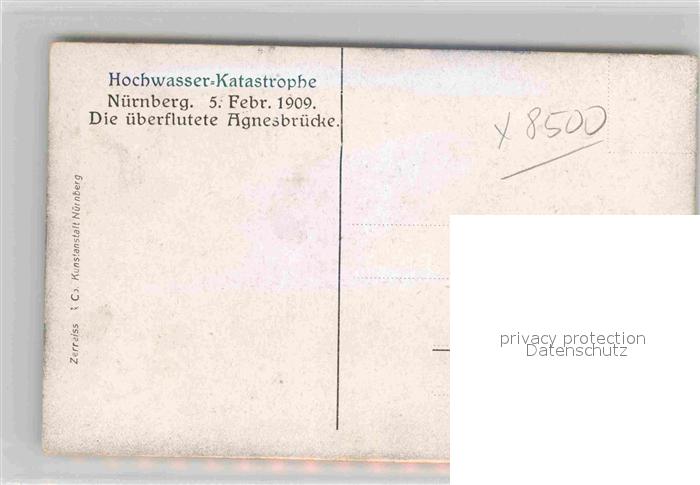 42809889 NueRNBERG CITY Hochwasser Katastrophe 1909 Agnesbruecke postalisch nicht gelaufen Erhaltung siehe scans [AndreD76] KatCode: 11110009564000