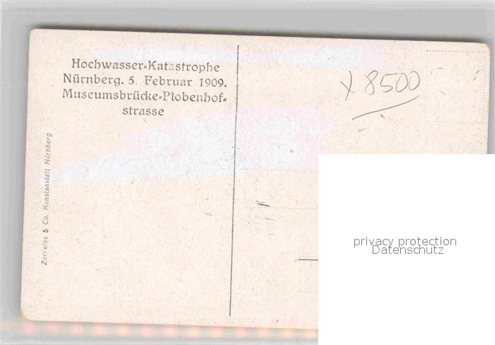 42809895 NueRNBERG CITY Hochwasser Katastrophe 1909 Museumsbruecke Plobenhofstrasse postalisch nicht gelaufen Erhaltung siehe scans [AndreD76] KatCode: 11110009564000