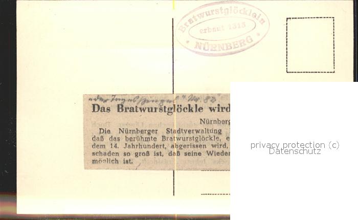 41478536 NueRNBERG CITY Innenansicht vom Bratwurstgloecklein postalisch nicht gelaufen Erhaltung siehe scans Alte Ansichtskarte Postkarte Bert Katcode 11110009564000