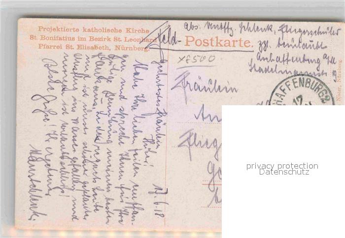 42649730 alte Postkarte NueRNBERG CITY Kirche Bonifatius Leonhard Elisabeth postalisch gelaufen Feldpost Erhaltung siehe scans [KathaD79] KatCode: 11110009564000