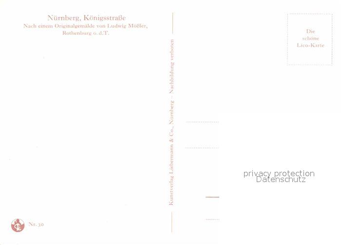 72625730 NueRNBERG CITY Koenigsstrasse Kirche nach Originalgemaelde von Ludwig Moeller Kuenstlerkarte Lico Karte Nr 30 postalisch nicht gelaufen Erhaltung siehe scans [FriedD77] KatCode: 11110009564000