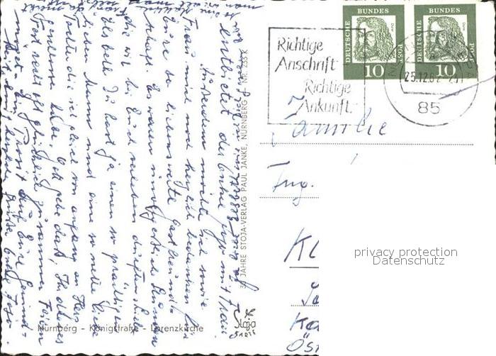 72138500 alte Postkarte NueRNBERG CITY koenigstrasse Lorenzkirche postalisch gelaufen Erhaltung siehe scans KatCode: 11110009564000