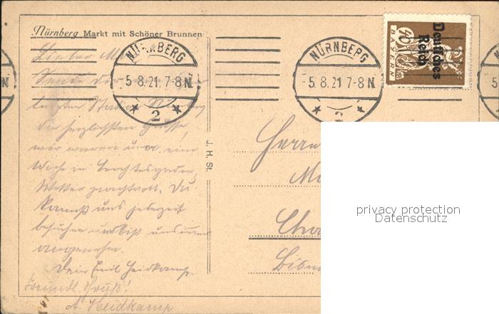 72507239 alte Postkarte NueRNBERG CITY Markt mit Schoener Brunnen postalisch gelaufen Erhaltung siehe scans KatCode: 11110009564000