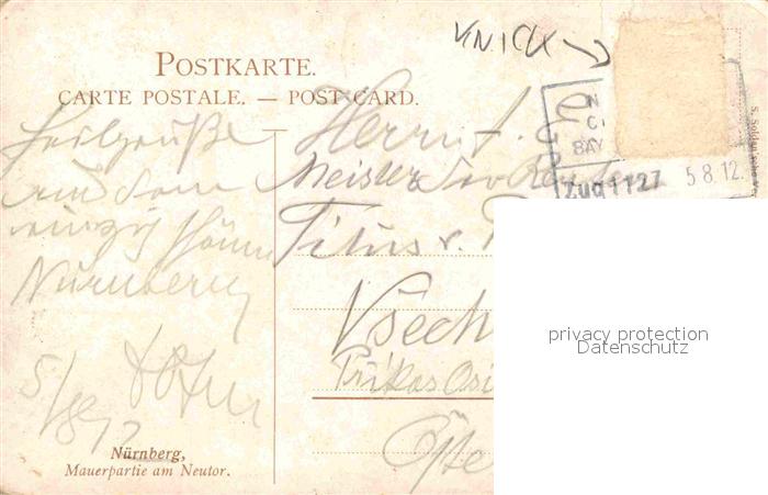 72919822 NueRNBERG CITY Mauerpartie am Neutor postalisch nicht gelaufen Bahnpost Erhaltung siehe scans [WerneD78] KatCode: 11110009564000