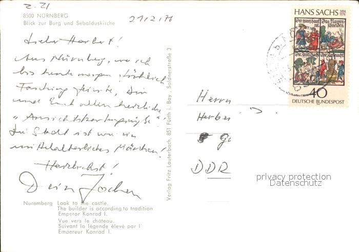 72563461 alte Postkarte NueRNBERG CITY mit Burg und Sebalduskirche postalisch gelaufen Erhaltung siehe scans [LiesaD40] KatCode: 11110009564000
