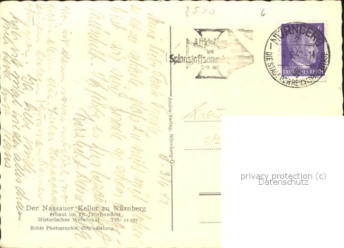 71502557 alte Postkarte NueRNBERG CITY Nassauer Keller postalisch gelaufen Erhaltung siehe scans KatCode: 11110009564000