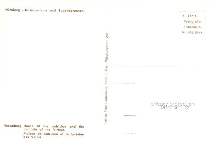 72967484 NueRNBERG CITY Nassauerhaus und Tugendbrunnen postalisch nicht gelaufen Erhaltung siehe scans [FriedD77] KatCode: 11110009564000
