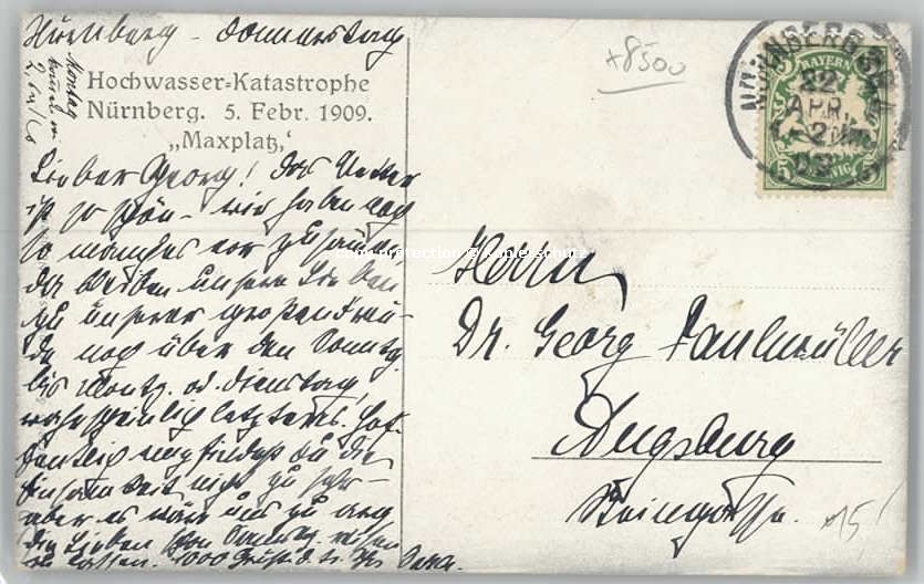 40230338 NueRNBERG CITY ochwasser-Katastrophe Maxplatz x 1909 postalisch gelaufen Alte Ansichtskarte Postkarte alte Postkarte Katcode 11110009564000