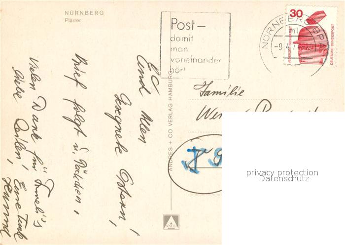 73648461 NueRNBERG CITY Plaerrer Fliegeraufnahme postalisch gelaufen Erhaltung siehe scans [WerneD78] alte Postkarte Wern Katcode 11110009564000