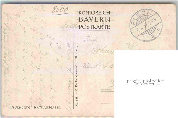 42809882 alte Postkarte NueRNBERG CITY Rathausgasse postalisch gelaufen Feldpost Erhaltung siehe scans [AndreD76] KatCode: 11110009564000