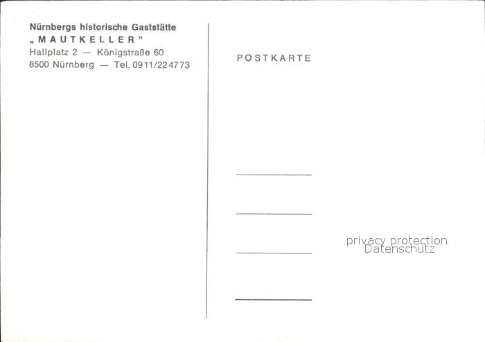72311353 NueRNBERG CITY Restaurant Mautkeller postalisch nicht gelaufen Erhaltung siehe scans KatCode: 11110009564000