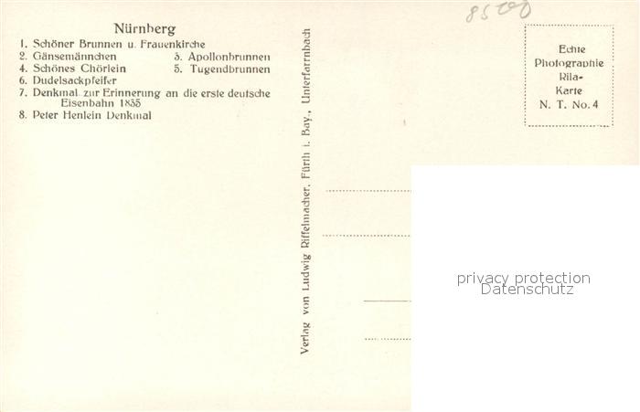 43345318 NueRNBERG CITY Schoener Brunne Gaensemaennchn Choerlein Dudelsackpfeifer Peter Henlein Denkmal Apollonbrunnen Tugendbrunnen postalisch nicht gelaufen Erhaltung siehe scans [WerneD78] Wern Katcode 11110009564000
