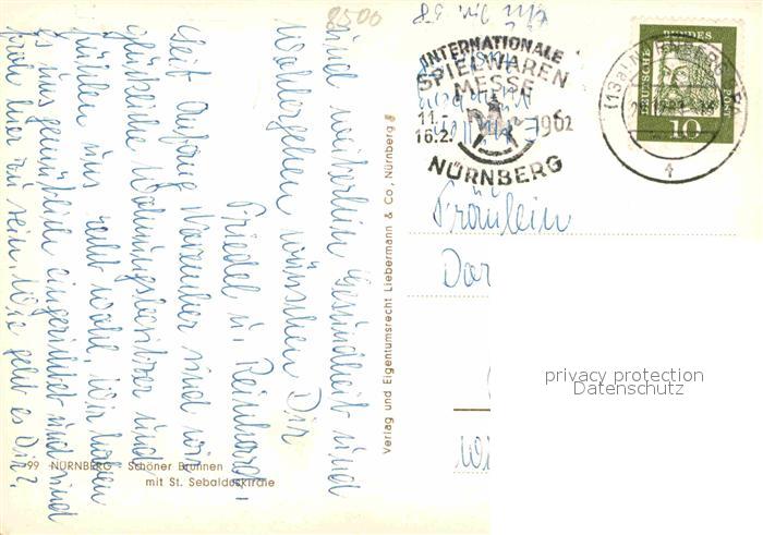 72822328 alte Postkarte NueRNBERG CITY Schoener Brunnen Sankt Sebalduskirche postalisch gelaufen Erhaltung siehe scans [AndreD76] KatCode: 11110009564000